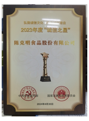 2024年获中共中央宣传部及国家生长和刷新委员会揭晓的“2023诚信之星”称呼