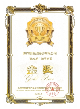 2023年第十九届中国国际粮油产品及手艺展示生意会获得“手擀面金奖”